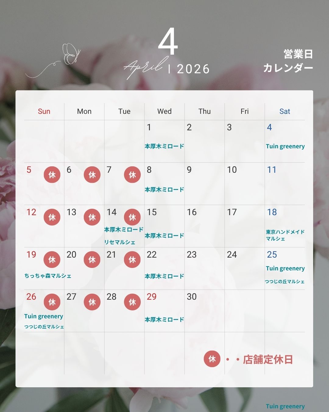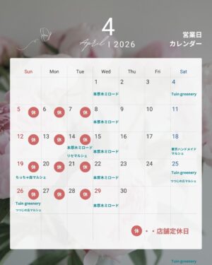 4日(土)25日(土)26日(日)「TUIN greenery」