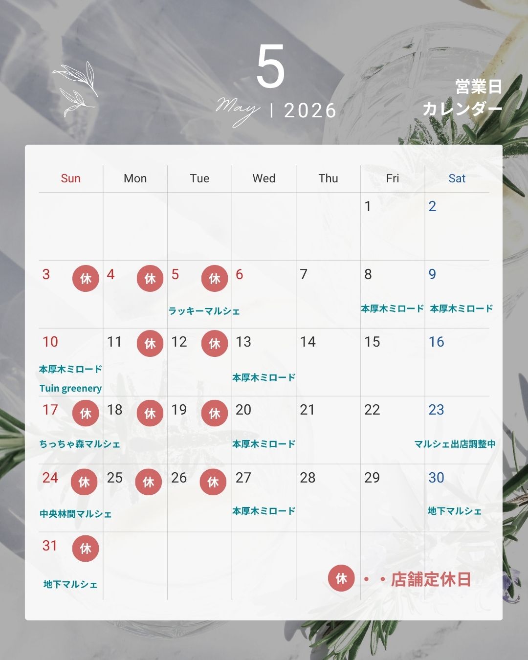 ※4日、25日はお店も営業します